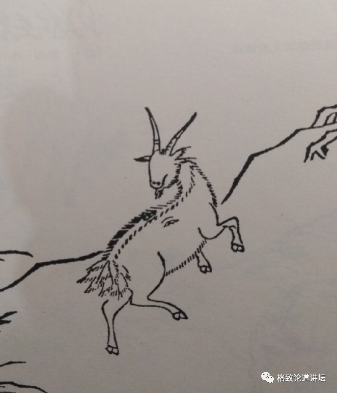 还有一种怪羊,它在基山上活动,其实它不叫怪羊,叫做猼訑,只是形状像羊。请大家注意,下图中它的脸上是空白的,没有眼睛。因为它的眼睛没长在头上,而是长在后背上,“其目在背”。